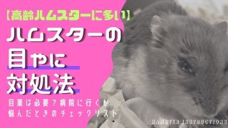 病気ハムスターの目やに対処法|目薬は必要?病院に行くか悩んだときのチェックリスト ハムスターの目やにの原因や目薬の入れ方、病院に行くべきサインについて飼育歴30年の筆者が解説しました。特に触れないハムスターのケア方法を実体験をもとにまとめ、目やにトラブルを起こさない飼い方もご紹介しています。 2026.01.04病気