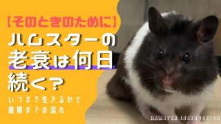 お世話ハムスターの老衰は何日続く?いつまで生きるかと最期までの流れ 「ハムスターの老衰は何日続く?2歳6ヶ月まで育てた経験をもとに、老衰の初期から最期までの兆候や、動かない・食べない時の接し方を詳しく解説。バニラアイスなどの終末期の食事や、病院に行くべきか悩む飼い主さんへ向けたアドバイスも掲載しています。」 2026.03.26お世話老ハム